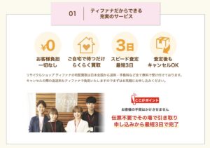 また、ティファナでは幅広いアイテムの買取に対応しています。ブランドバッグやブランド財布、アクセサリー、時計はもちろん、洋服や靴、ファッション小物なども査定対象です。クローゼットの中に眠っている洋服や、使わなくなったブランドバッグなどをまとめて査定に出すことができるため、家の整理や断捨離をしたい方にもぴったりのサービスです。不要になったアイテムを一度に整理できるため、部屋やクローゼットをすっきりさせることにもつながります。
