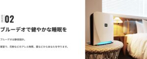 さらに、BLUE DEOはコンパクトで使いやすい設計も特徴です。設置スペースを取らず、インテリアにもなじみやすいデザインになっているため、リビングや寝室、オフィスなどさまざまな場所に設置できます。操作もシンプルで、日常生活の中で無理なく取り入れることができます。