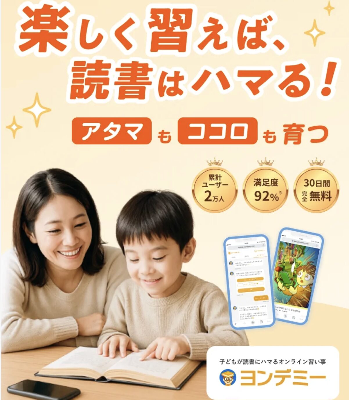 読書習慣は、学力の土台を作るうえで非常に重要です。語彙力や読解力はもちろん、想像力や思考力、さらには将来の学習意欲にも大きな影響を与えます。しかし、その習慣を身につけるには「継続」と「適切なサポート」が不可欠です。ヨンデミーは、その両方を高いレベルで実現するサービスと言えるでしょう。