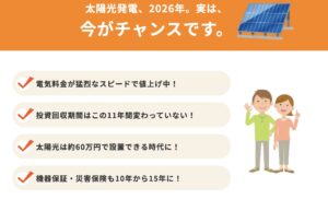 電気代の節約、災害対策、そして将来への投資として。太陽光発電を検討している方は、まずタイナビでの一括見積もりから始めてみてはいかがでしょうか。効率よく情報を集め、あなたにとって最適な選択を見つける第一歩となるはずです。