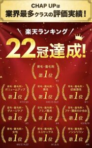 チャップアップはこうした考えに基づき、頭皮ケアを重視した処方となっている点も特徴です。保湿成分や植物由来エキスも多数配合されており、乾燥しがちな頭皮に潤いを与えながら、健やかな状態へ導きます。さらに、フケやかゆみの予防にも対応しており、総合的なスカルプケアが可能です。