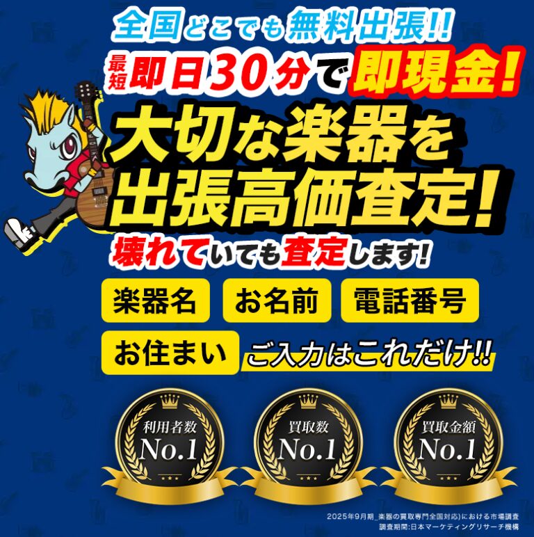 まずは簡単な無料査定から始めてみてください。わずか数分の申し込みで、あなたの楽器がどれくらいの価値を持っているのかが分かります。今このタイミングだからこそ得られる高価買取のチャンスを、ぜひ逃さず活用してみてください。