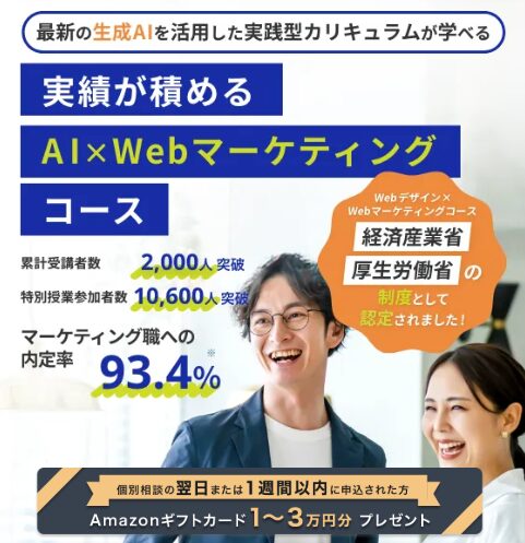 最大の特徴は、実務に直結したカリキュラムです。広告運用、SEO、アクセス解析など、Webマーケティングに必要なスキルを体系的に学べるだけでなく、実際の案件を想定した課題に取り組むことで、現場で求められる力を養うことができます。これにより、「学ぶだけ」で終わらず、すぐに仕事に活かせるスキルを身につけられるのが大きな魅力です。
