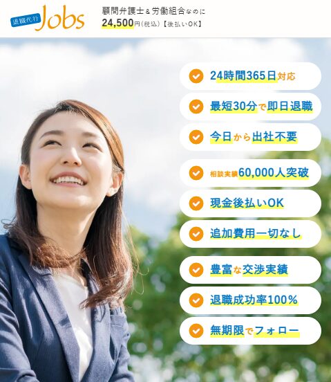 退職は人生の大きな転機ですが、無理をして働き続けることが必ずしも正解とは限りません。退職代行Jobsを利用することで、ストレスの原因から解放され、自分らしい新しいスタートを切ることができます。悩み続ける時間を減らし、前向きな未来へ進むための一歩として、安心して利用できるサービスです。