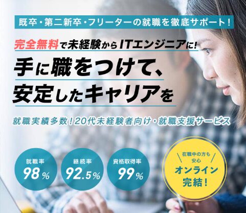 また、学習だけでなく就職支援も手厚く、履歴書の添削や面接対策、企業紹介までトータルでサポートしてもらえます。IT業界に特化した求人を紹介してもらえるため、効率よく内定を目指せるのもポイントです。一人で就活を進めるよりも、圧倒的にスムーズに進めることができます。