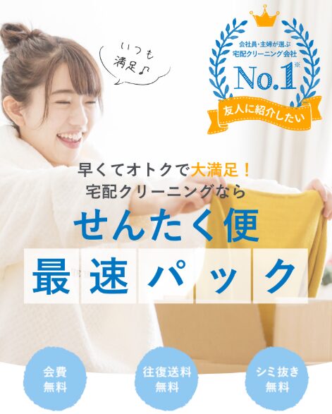 せんたく便は、「クリーニングに出す時間がない」「まとめて衣類をキレイにしたい」と考えている方に向けた、宅配クリーニングサービスです。自宅から発送するだけでクリーニングが完了する手軽さと、コストパフォーマンスの高さが特徴で、忙しい現代人にぴったりのサービスとなっています。