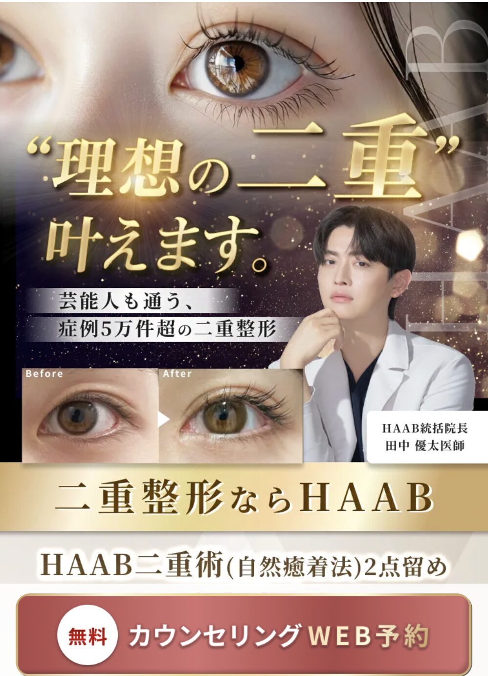 「毎日のアイプチから解放されたい」「自然でバレにくい二重になりたい」「自分に似合う理想の目元を手に入れたい」——そんな方にこそ、HAABクリニックの二重整形はおすすめです。