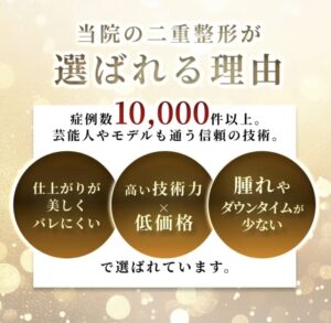 また、HAABクリニックが選ばれている理由は、技術力だけではありません。一人ひとりの目元の状態や希望に合わせたオーダーメイドのデザイン提案にも力を入れています。単に二重にするのではなく、「どの幅が似合うのか」「どの形が自然なのか」を丁寧にカウンセリングしながら決定するため、仕上がりの満足度が高いのも特徴です。
