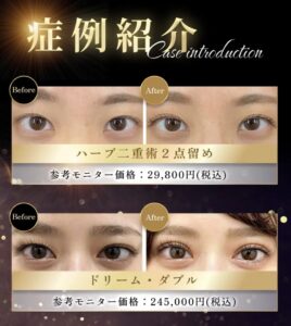 さらに、「ドリーム・シングル」「ドリーム・ダブル」「ドリーム・トリプル」といった複数のプランが用意されており、糸の本数や固定方法によって持続力や強度を調整することが可能です。強度を高めることで二重ラインが長持ちしやすくなり、より理想に近い目元をキープすることができます。