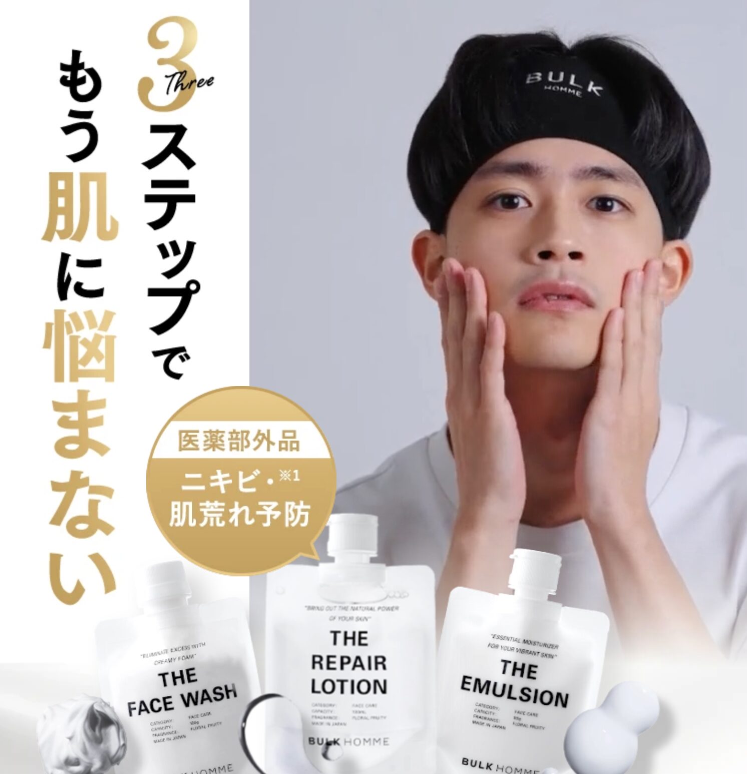 BULK HOMME(バルクオム)は、そんな男性の肌に特化して開発されたスキンケアブランドです。ニキビに悩む多くの男性に支持されている理由は、シンプルでありながら本質的なケアにあります。