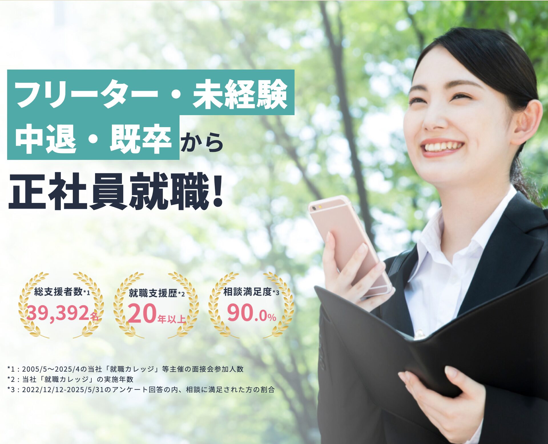 実績面においても、就職カレッジは2005年のサービス開始以来、多くの求職者の就職を支援してきました。累計で数万人規模の支援実績があり、長年のノウハウが蓄積されています。加えて、入社後の定着率は90%以上とされており、単に就職できるだけでなく、その後も安定して働き続けられる環境づくりに力を入れていることが分かります。