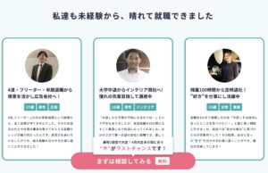 また、特徴的なのが無料で受講できる就職講座の存在です。この講座では、ビジネスマナーや社会人としての基本的な考え方、コミュニケーション能力、面接対策など、実際の就職活動や入社後に必要となるスキルを体系的に学ぶことができます。単なる知識のインプットだけでなく、ロールプレイングやグループワークを通じて実践的に習得できるため、社会人経験がない人でも自信を持って選考に臨めるようになります。