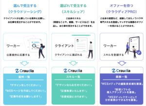 クラウディア(Craudia)は、「在宅で収入を得たい」「スキマ時間をお金に変えたい」「本業以外の収入源を作りたい」と考えている方にぴったりのクラウドソーシングサービスです。パソコンやスマートフォンがあれば、自宅にいながら全国のクライアントとつながり、さまざまな仕事に挑戦することができます。