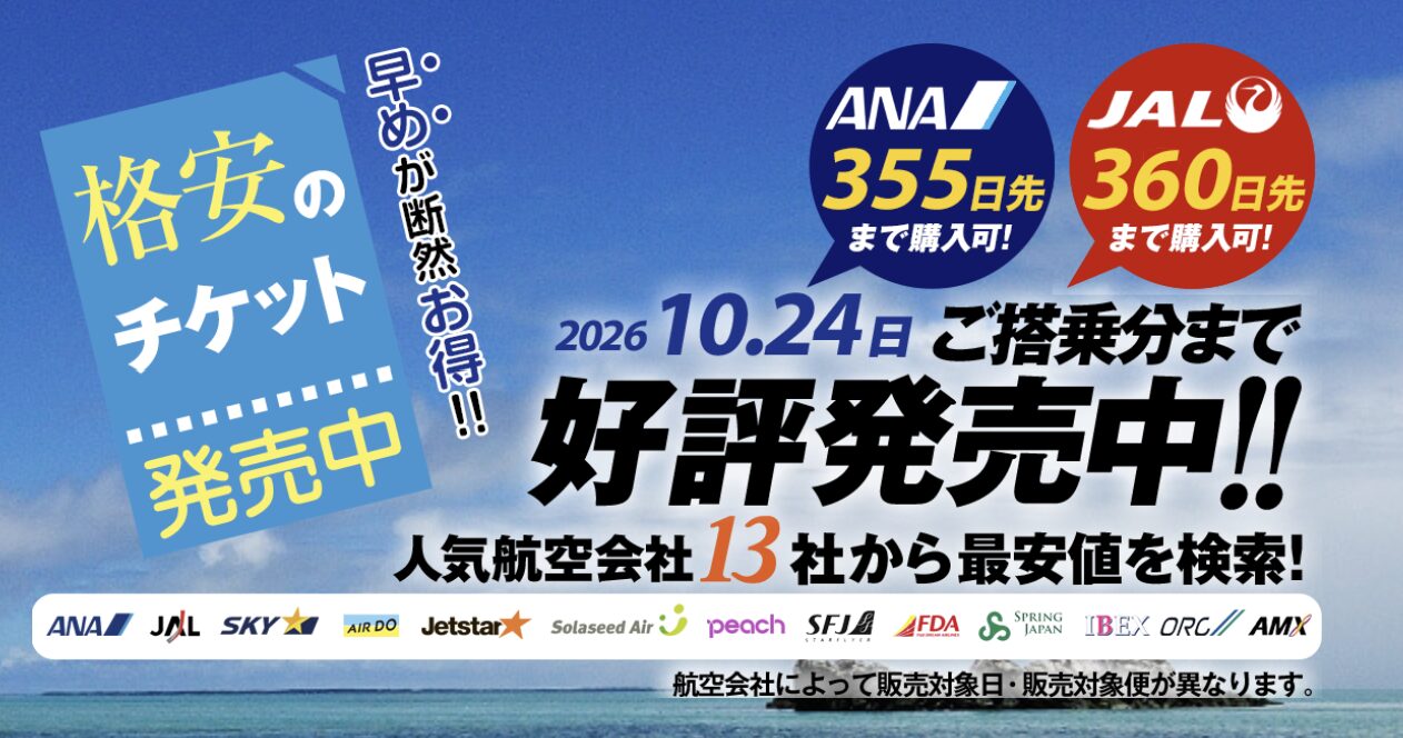 格安航空券モール(Airticket Mall)は、国内線・国際線の航空券を一括で比較・検索できる便利な予約サービスです。「できるだけ安く航空券を取りたい」「複数サイトを見比べるのが面倒」「出発日が近いけど少しでも安く抑えたい」――そんな方にとって、効率よく最安値を探せる心強い味方となります。