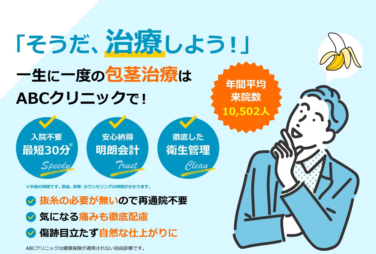 ABCクリニック美容外科は、男性特有のデリケートな悩みに特化した男性専門の美容医療クリニックです。包茎治療や亀頭増大、長茎術など、他人には相談しにくいコンプレックスに対して、医療の力で根本から向き合うサポートを行っています。男性器の悩みは非常にプライベート性が高く、インターネットで検索はするものの、実際に相談する一歩が踏み出せないという方も少なくありません。ABCクリニック美容外科は、そうした不安や恥ずかしさに配慮した環境づくりを徹底している点が大きな特徴です。