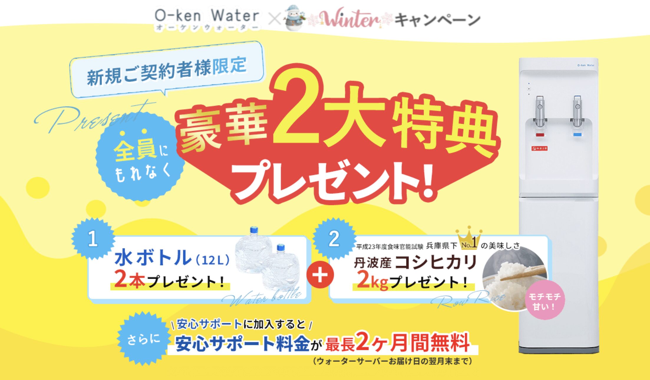 料金体系についても、オーケンウォーターは業界内でも競争力のある設定を採用しています。お得プランを用意し、必要な分だけ購入できる柔軟性があるため、無駄なコストを抑えつつ、安全で美味しい水を継続的に楽しめます。また、新規契約キャンペーンや乗り換えキャンペーン、紹介キャンペーンなども展開されており、初めての方でもお得に始められる工夫がされています。これらのキャンペーンでは、地域特産品の「丹波のコシヒカリ」などのプレゼントもあり、単なるウォーターサーバー利用だけでなく、地域貢献や特典の楽しみもあります。
